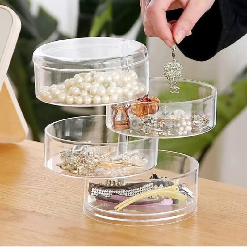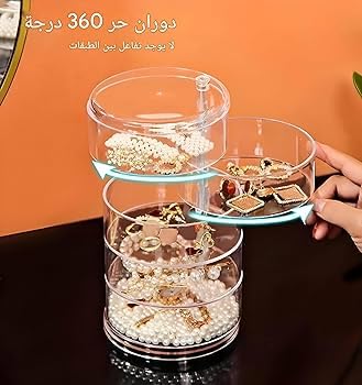 - يتميز صندوق تخزين المجوهرات الدوار المكون من 5 طبقات بتصميم شفاف بسعة كبيرة، مما يوفر جمالية بسيطة وعصرية. تتيح آلية الدوران سهولة الوصول إلى جميع الطبقات، مما يجعلها حلاً متعدد الاستخدامات وفعال لتخزين مجوهراتك وإكسسوارات الشعر والساعات والمزيد.