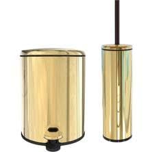 Generic - سلة مهملات من الستانلس ستيل سعة 5 لتر وفرشاة مرحاض سيرين - لون ذهبي