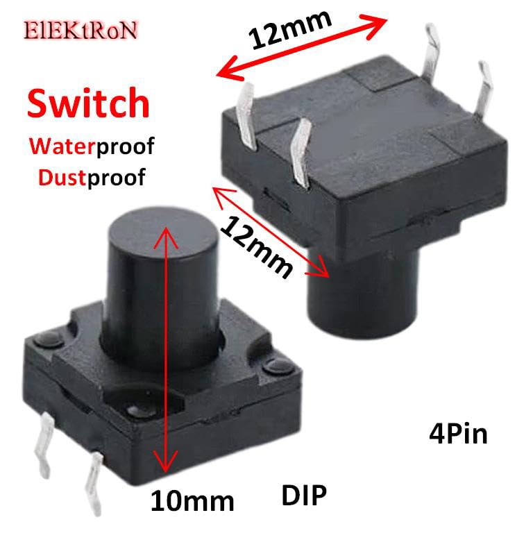 Generic - زر طاقة- مايكرو متين مقاوم للغبار ومقاوم للماء، زر ضغط لحظي 4 دبابيس، مقاس (12 ملم × 12 ملم × 10 ملم)، 5 قطع