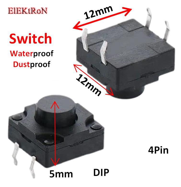 Generic - عدد 5 قطع من باور زر - مايكرو عالي الأداء متين مقاوم للغبار ومقاوم للماء، زر ضغط لحظي 4 دبابيس (12 ملم × 12 ملم × 5 ملم) DIP