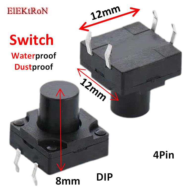 Generic - عدد 5 قطع من باور زر - مايكرو عالي الأداء متين مقاوم للغبار ومقاوم للماء، زر ضغط لحظي 4 دبابيس (12 ملم × 12 ملم × 8 ملم) DIP