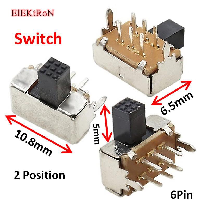 Generic - مفتاح تبديل عالي الأداء صغير الحجم – مقبض 5 ملم، موديل SK-22D02 SK22D02 SK22D02GB5، يحتوي على 6 دبابيس، ووضعيتين (2P2T)، مزدوج الانزلاق، بتصميم أفقي، الأبعاد: 10.8 ملم × 6.5 ملم × 5 ملم