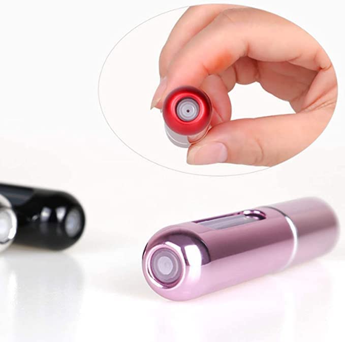 Spaceshoop - زجاجات صغيرة فارغة محمولة ببخاخ لاعادة تعبئة العطور 5 مل، 5 قطع، جراب مضخة سفلية قابلة لاعادة الملء للسفر والوضع في الشنطة، متعددة الالوان، 5 مل
