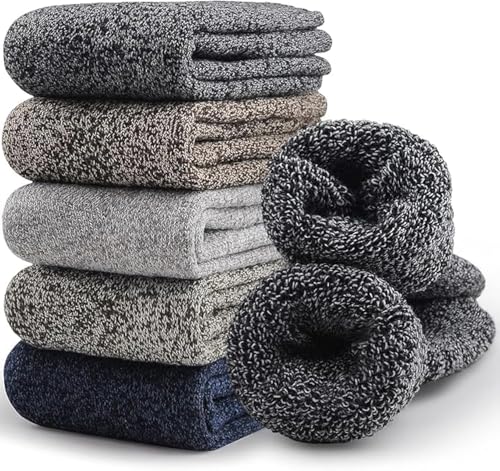 Ybaier - شرابات صوف ميرينو للرجال، تصميم سميك من الصوف الشتوي للمشي لمسافات طويلة، دافئة وجيدة التهوية، مجموعة من 5 أزواج