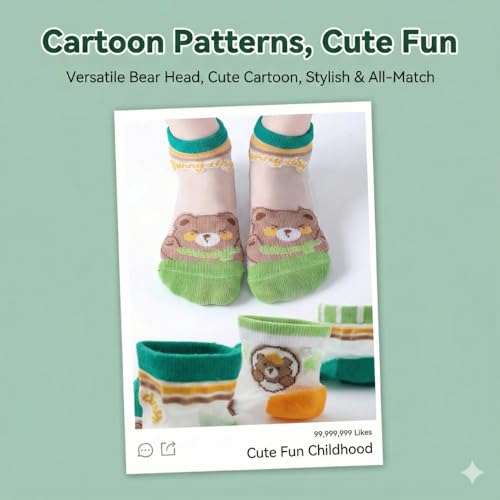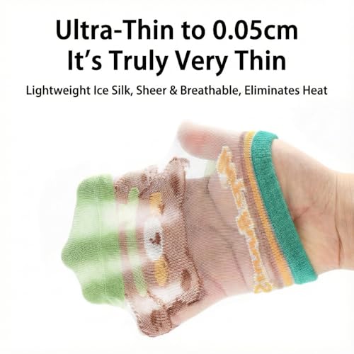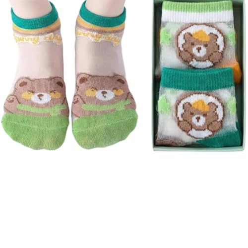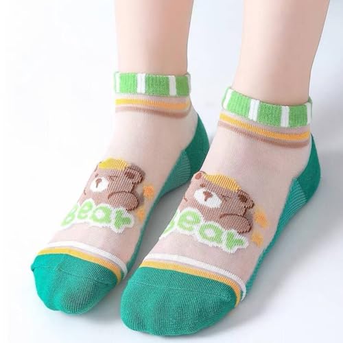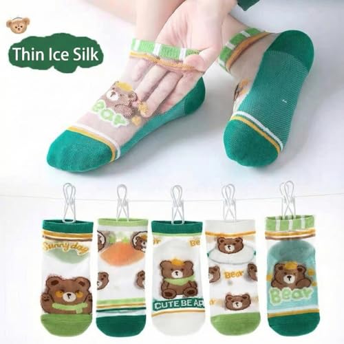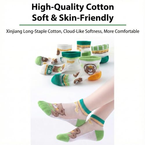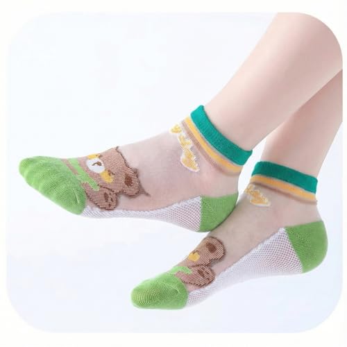 Generic - مجموعة 5 ازواج مع 1 هدية جوارب أطفال بناتي (6 أزواج) صيفية، خامة حرير ثلج فائقة الرقة (شيفون شفاف)، تصميمات دببة كرتونية مرحة، ناعمة ومسامية للتخلص من الحرارة
