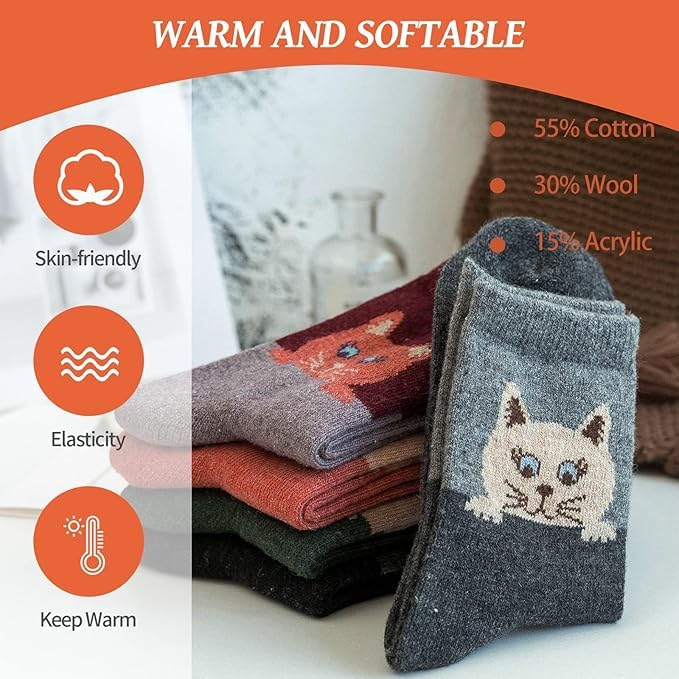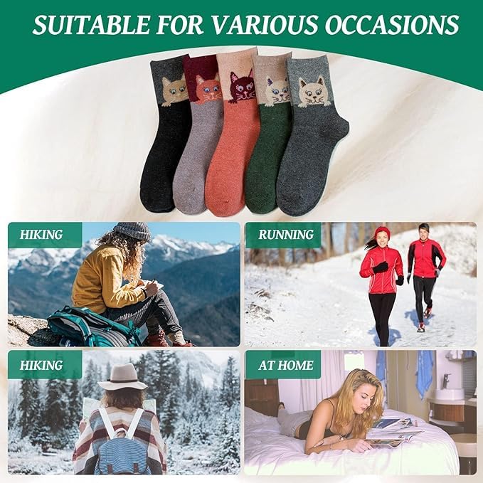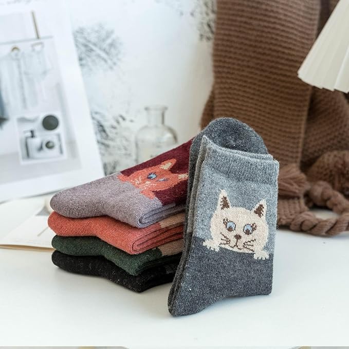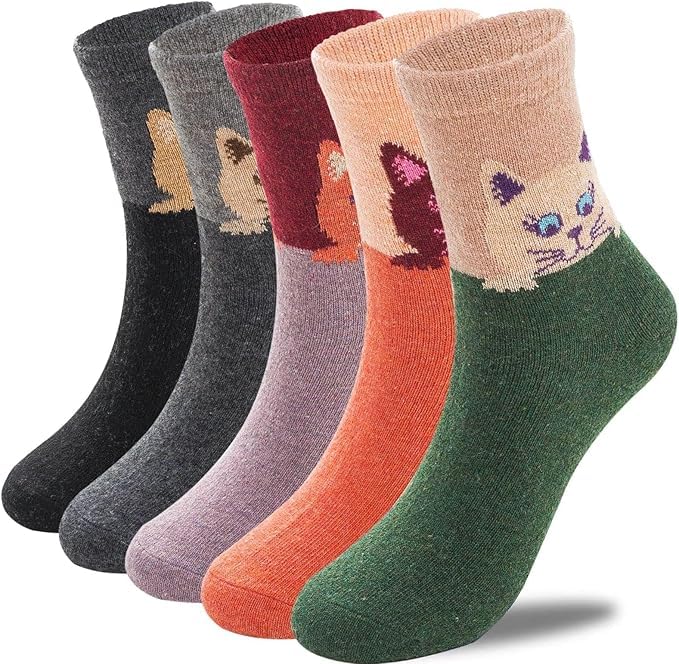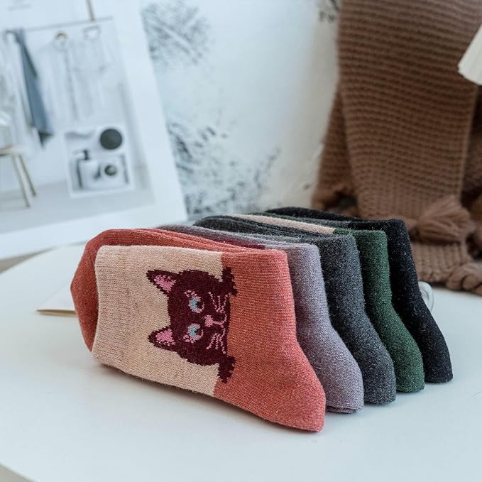 fashion mania - شرابات دافئة منفوشة بنمط القط الكرتوني، شرابات قطيفة مرجانية ثلاثية الأبعاد ملتوية، شرابات دافئة لطيفة على شكل قطة غريبة المظهر، 5 أزواج