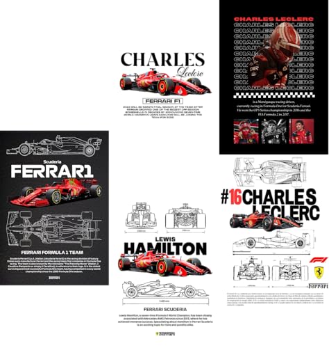Generic - لوحات جدارية من ناتشورال بوستر ديزاين، ملصقات لغرفة المعيشة بتصميم سيارة فيراري فورمولا ون، لون أحمر، مقاس 20 × 30 سم، مجموعة من 5 قطع