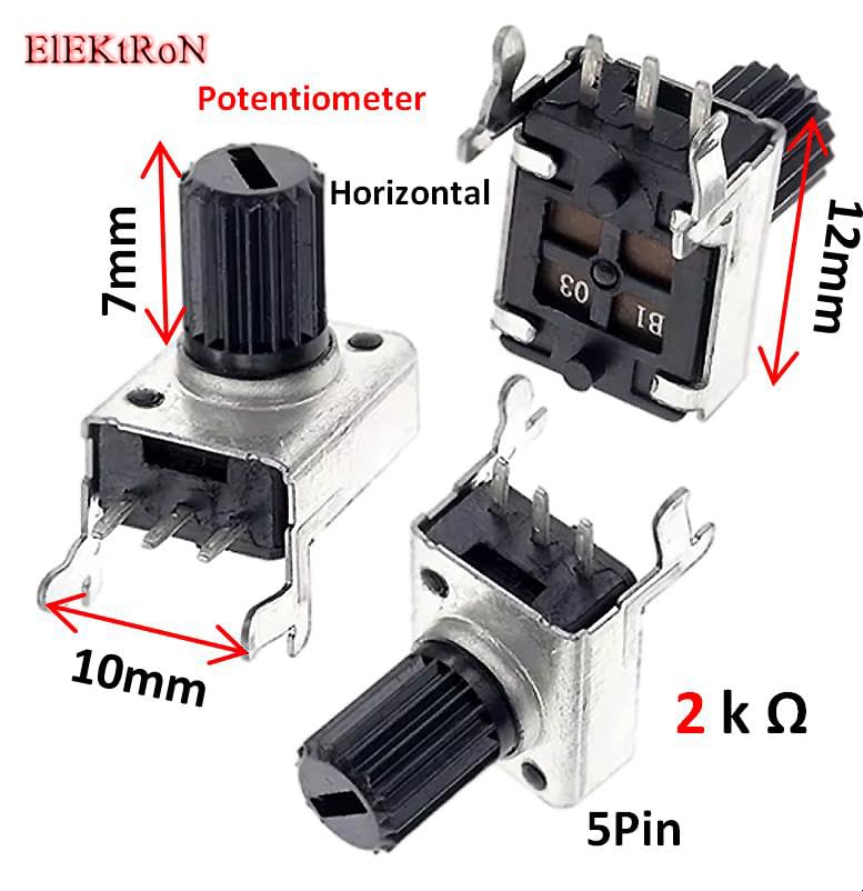 - 5 قطع 2K اوم عالي الأداء متين 2K اوم أفقي 15 ملم مقياس جهد راديو مقاوم قابل للتعديل RV09 مضخم طاقة 0932 حجم 3 دبابيس عمود (12 ملم × 9 ملم) DIP