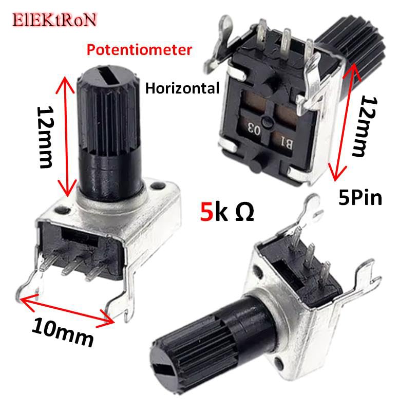 - 5 قطع عالية الأداء متينة 5 كيلو اوم أفقي 20 ملم مقياس جهد راديو مقاوم قابل للتعديل RV09 مضخم الطاقة 0932 عمود 3 دبابيس (12 ملم × 10 ملم) DIP