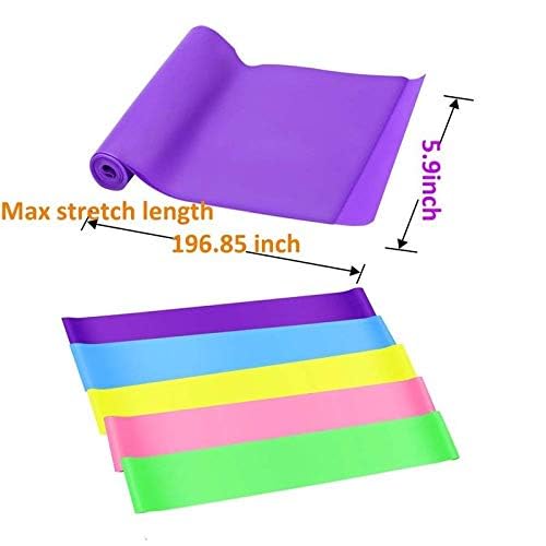 Generic - طقم أحزمة مقاومة لليوجا وتمارين اللياقة البدنية والبيلاتيس وتدريبات القوة والعلاج الطبيعي وإعادة التاهيل - 5 قطع (متعددة الألوان)