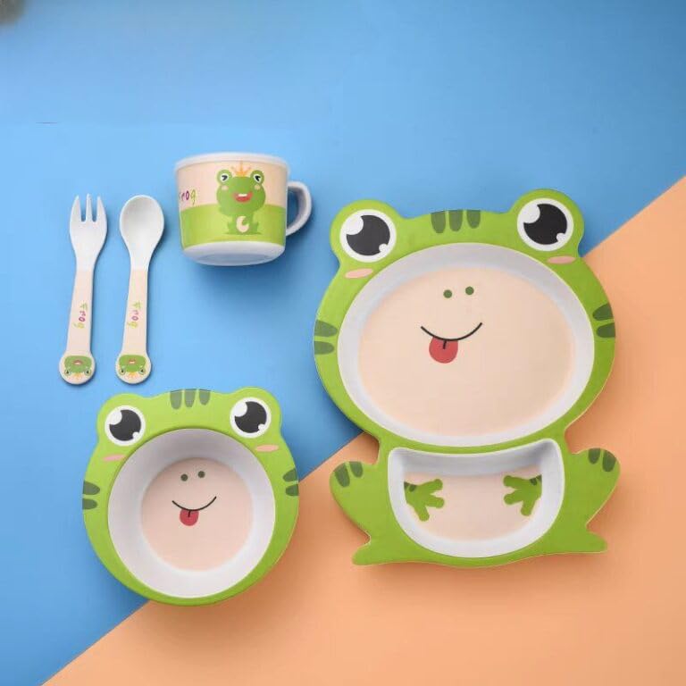 Generic - طقم طعام للاطفال مكون من 5 قطع، على شكل ضفدع