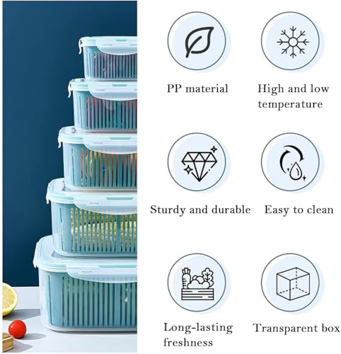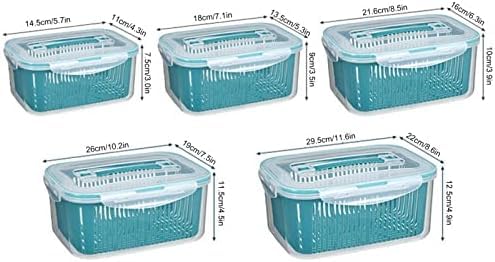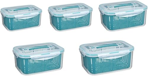GENERIC - حاويات تخزين الطعام للثلاجة مع مصفاة قابلة للازالة - صناديق بلاستيكية محكمة الغلق متعددة المقاسات للفواكه والخضروات وبقايا الطعام - خالية من البيسفينول ايه، منظم مطبخ قابل للتكديس - 5 قطع