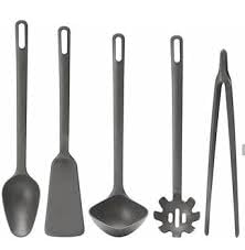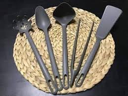 - يشمل ملعقة تقليب، ملعقة عادية، مغرفة شوربة، مغرفة معكرونة، وملقط طهي.