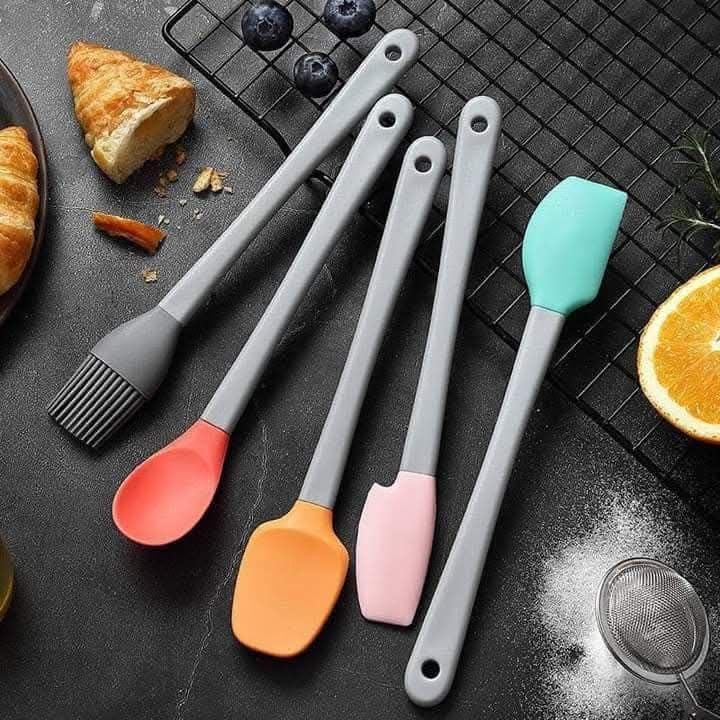 - مجموعة متعددة الاستخدامات: مجموعة ملاعق مسطحة كاملة من السيليكون مكونة من 5 قطع بما في ذلك ملعقة الدهن والمقشطة وفرشاة الدهن، مثالية لجميع احتياجات الطبخ والخبز