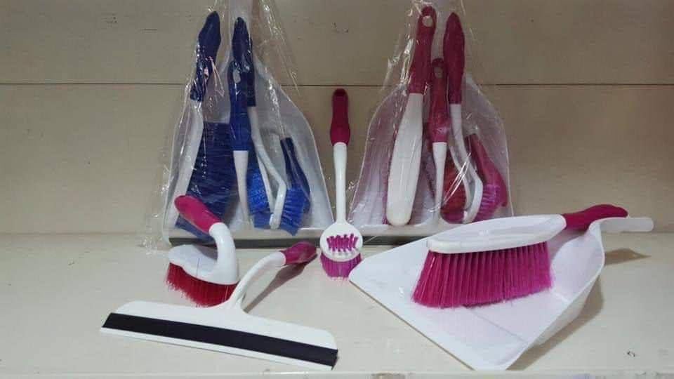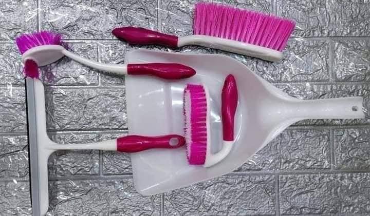Generic - مجموعة تنظيف متعددة الاستخدامات مكونة من 5 قطع جاروف ومكنسة وفرشاة بلاط وممسحة