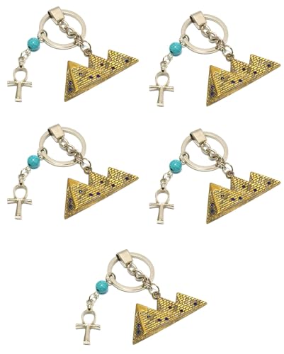 Generic - 5 قطع من سلسلة مفاتيح الاهرامات الفرعونية هدايا تذكارية مصرية مصر فرعون اصلي اصفر محروق مع مفتاح عنخ