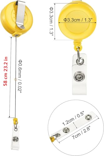 - بكرات شارة قابلة للسحب وسهلة الاستخدام: تصميم بكرة الشارة القابل للسحب يجعلها سهلة الاستخدام للغاية. ما عليك سوى ترك المشبك يمسك ملابسك أو جيب القميص أو الحزام بإحكام. أقصى طول قابل للسحب 22.5 انش يسمح لك بالتخلص من استخدام الحبل بسهولة. مثالي لشارة العمل والمفتاح.
