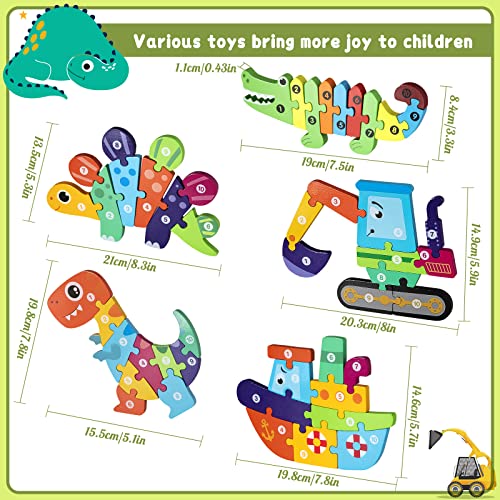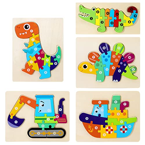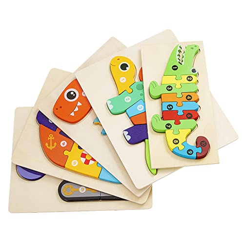 - 【مجموعة أحجية للأطفال الصغار من 5 قطع】5 أحجيات حيوانات خشبية بشكل فردي للأطفال الصغار، ألعاب مونتيسوري بما في ذلك التمساح والديناصور والحفارات والسفن وتنمية قدرات الطفل المعرفية والذاكرة.