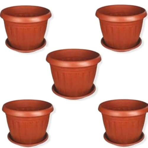 Generic - 5 اوعية بعرض 8 بوصة مع تربة اللفافة الاخمصية لتر برتقالي خشب السنط
