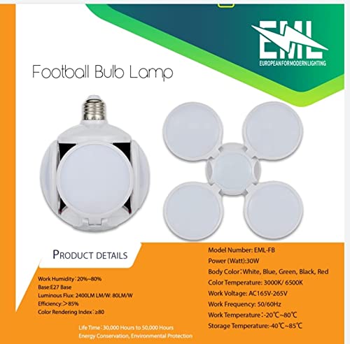 EML - مصباح LED علي شكل كرة القدم قابل للطي من 5 لمبات بقدرة 30 وات أبيض EML بلاستيك