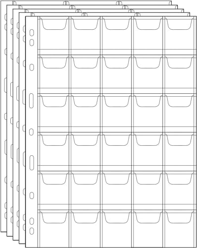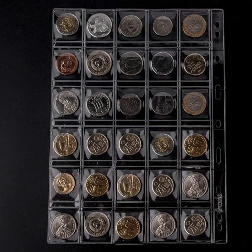 Generic - مجموعة أوراق بلاستيك بتصميم جيوب لهواة جمع العملات المعدنية مجلد بعدد 30 جيب 5 ورقات متعدد الألوان