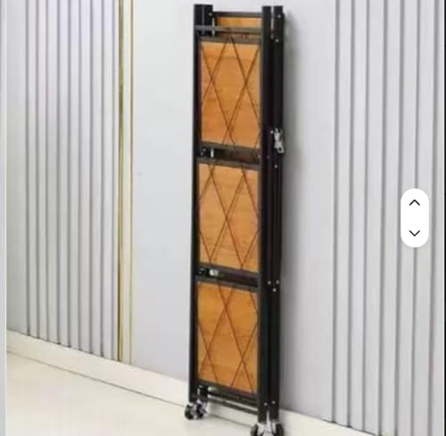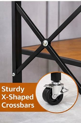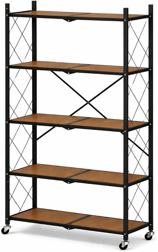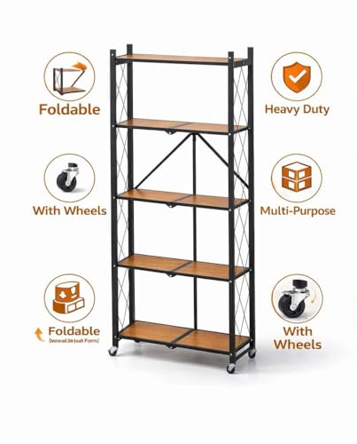 Generic - رف تخزين معدني قابل للطي من 5 ارفف على عجلات، وحدة رفوف سلكية شديدة التحمل للمراب والمطبخ، منظم خشبي ومعدني اسود، 71.1 × 35.6 × 65 انش
