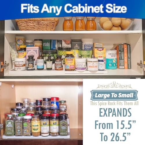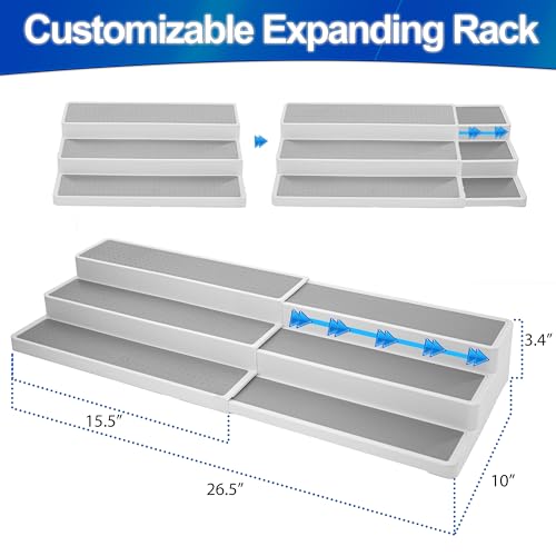 5 STAR SUPER DEALS - منظم رف توابل من 3 رفوف قابل للتوسيع ومضاد للانزلاق لوحدة تخزين المطبخ ومنظم سطح الطاولة بطول قابل للتعديل من 39.3 إلى 67.3 سم من فايف ستار سوبر ديلز - أبيض/رمادي