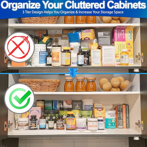 - منظم رف التوابل مكون من ثلاث رفوف لتوفير أقصى قدر من الرؤية: التصميم المتدرج لمنظم رف التوابل يوفر سهولة رؤية الأشياء المخزنة في الخلف والوصول إليها. كل رف يرفع العناصر أعلى قليلًا من تلك الموجودة أدناه، مما يضمن أن تكون جميع التوابل والأشياء الصغيرة مرئية ويمكنك من الوصول إليها في لمحة. يقلل هذا التصميم من الحاجة إلى خلط العناصر، مما يمنحك الوقت والجهد في المطبخ.