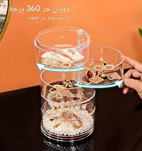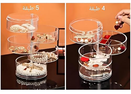 Generic - صندوق تخزين مجوهرات مكون من 5 طبقات - منظم قابل للدوران والتكديس للمجوهرات وإكسسوارات الشعر والأشياء الصغيرة، تصميم شفاف مع غطاء مقاوم للغبار، صديق للبيئة، هدية مثالية للمناسبات الخاصة (4 طبقات)