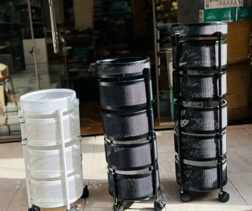 Generic - تربو مطبخ معدن 5 دور بعجل – منظم مطبخ معدني عالي الجودة بخمسة أرفف لتخزين الأدوات والمنتجات – تصميم أنيق وسهل الحركة