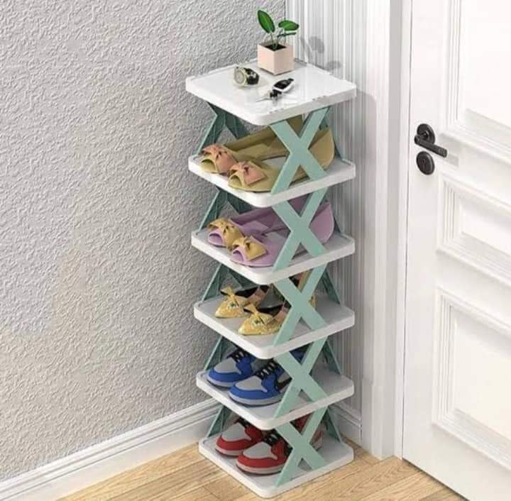 - تصميم موفر للمساحة: منظم أحذية عمودي بـ 5 أرفف يستوعب عدة أزواج من الأحذية مع توفير المساحة الأرضية في المنزل أو الحمام أو غرفة النوم