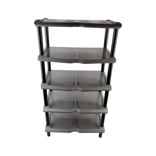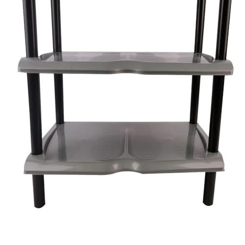 - هيكل متين: مصنوع من أرفف بلاستيكية قوية وأعمدة دعم سوداء قوية تضمن الثبات والأداء طويل الأمد