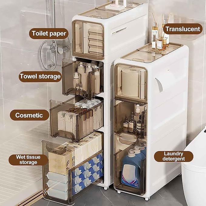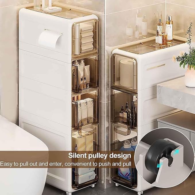 Generic - منظم تخزين 5 دور مزود بعجل متعدد الاستخدام – خامة عالية الجودة لتنظيم المطبخ والحمام والغرف بشكل عملي وموفر للمساحة
