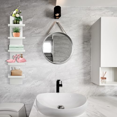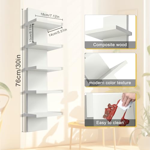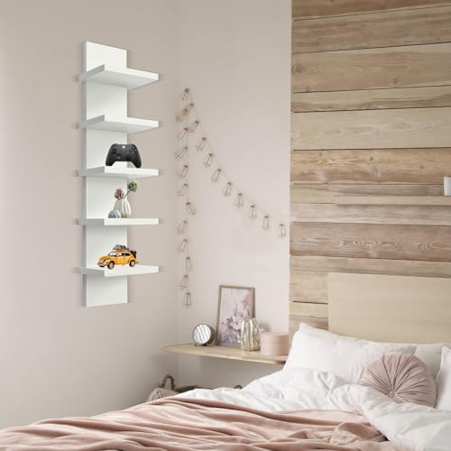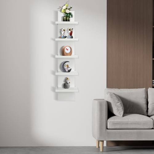 YEXEXINM - وحدة رفوف حائط من 5 طبقات - رف عائم، لمسة نهائية رقيقة ناعمة، عمود عمودي لديكور الحائط، منظم ديكور منزلي طويل لغرفة النوم والحمام، ابيض