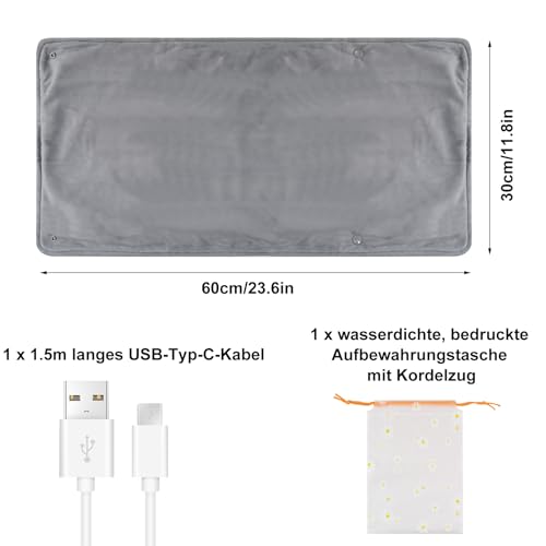 XunHe - وسادة تسخين كهربائية 5 فولت بمنفذ USB، 30 × 60 سم، وسادة حرارية كهربائية قابلة للطي والغسل بدرجة حرارة ثابتة 55 درجة لتسخين الظهر والرقبة والكتف والقدمين