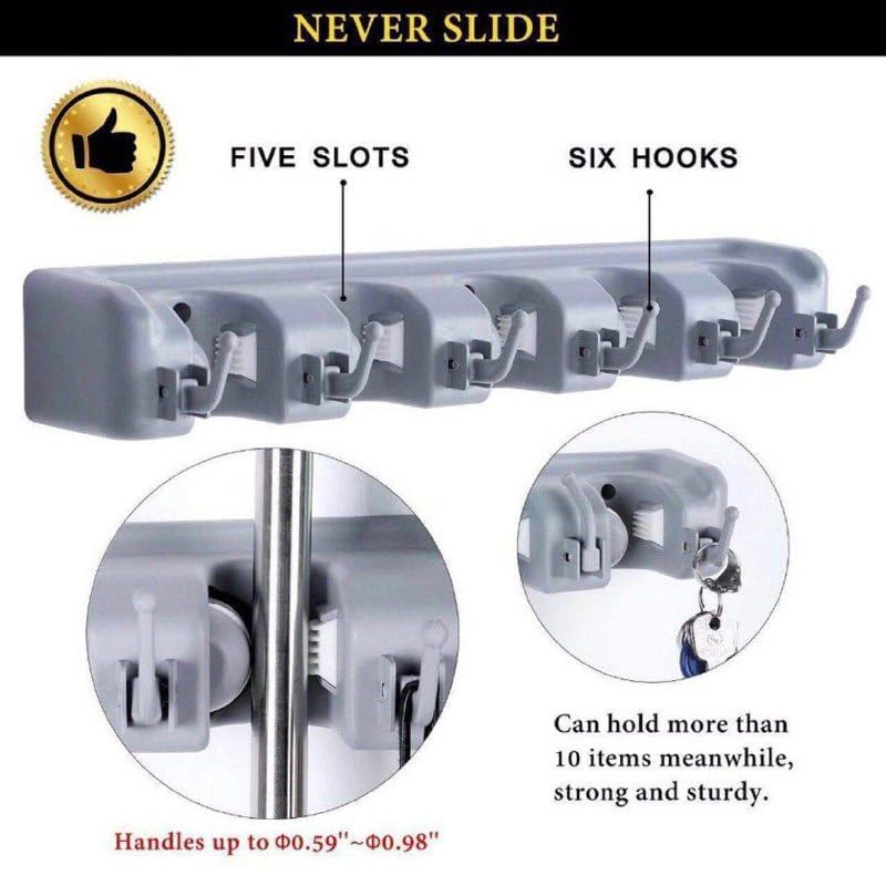 Generic - منظم أدوات التنظيف والمطبخ الخماسي شديد التحمل - حامل مكانس ومساحات بـ 5 فتحات وخطافات قوية لتنظيم المطبخ والحمامات وتوفير المساحة k