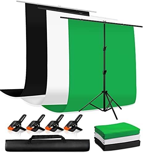 Generic - طقم خلفيات تصوير محمولة مكون من خلفية بلون أبيض وأسود وأخضر مقاس 1.5×2 متر للبث المباشر وزوم ويوتيوب والصور الفوتوغرافية، مع حامل قابل للتعديل مقاس 2×1.8 متر