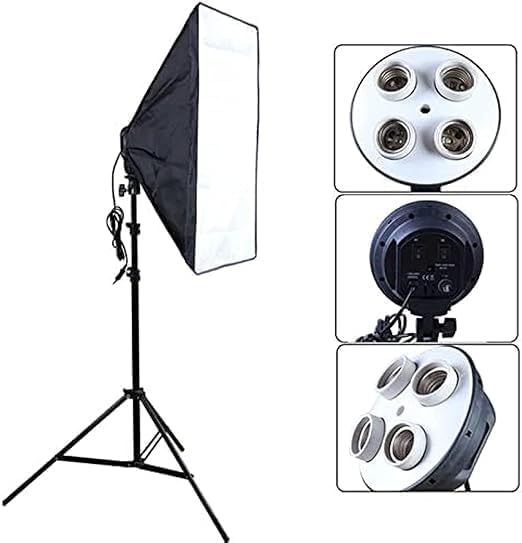Generic - سوفت بوكس رباعي 50*70 سم اضاءة احترافيه للتصوير الفوتوغرافى و صنع المحتوى وجلسات التصوير( 1سوفت بوكس مع حامل 2م مع 4 لمبات بقوة 88 واط )