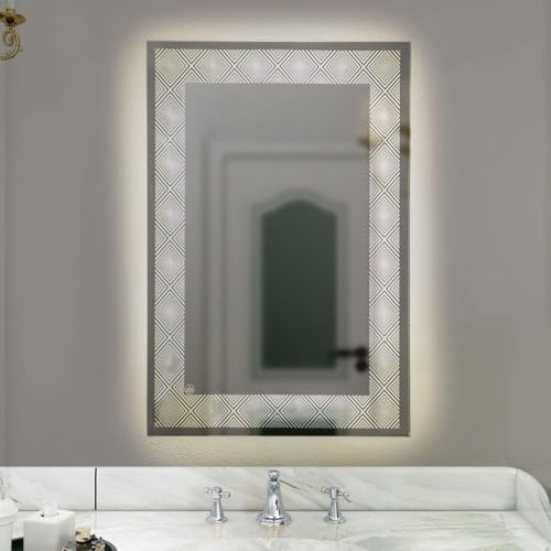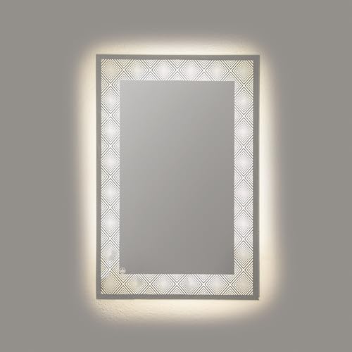 Generic - مراة اضاءة دافئة 50 × 70 سم - مراة فانيتي مستطيلة مضيئة باضاءة LED مع توهج ناعم قابل للتعتيم، مراة حائط عصرية للحمام وغرفة النوم، مضادة للضباب، اضاءة موفرة للطاقة، مثالية للمكياج والعناية الشخصية