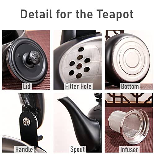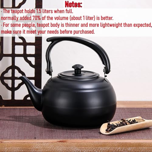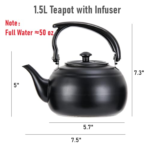 DoroSun - إبريق شاي من الفولاذ المقاوم للصدأ مع مصفاة لأوراق الشاي السائبة، إبريق شاي معدني لغلي القهوة والماء على الموقد، غلاية لصنع الشاي للفنادق والمطاعم والمنازل والمطبخ، لون أسود، 1.5 لتر