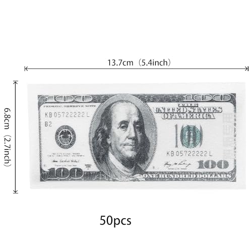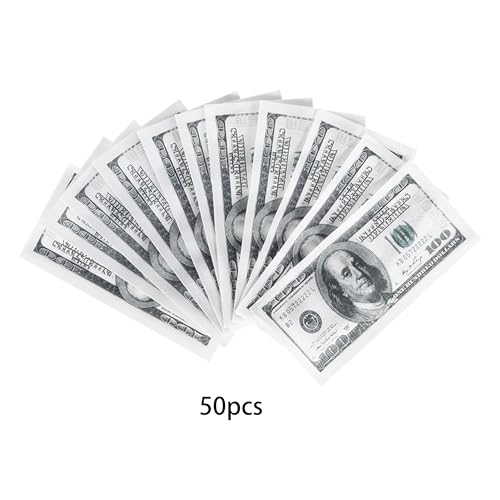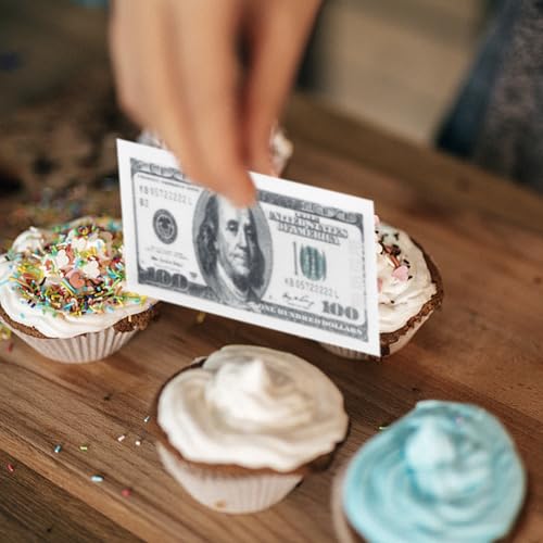 YCTHUNFISH - مجموعة من 50 قطعة قابلة للأكل بتصميم صورة فاتورة بقيمة 100 دولار، من ورق ويفر مزيف لتزيين الكيك وحفلات استقبال المولود وعيد الميلاد والذكرى السنوية ولوازم الحفلات