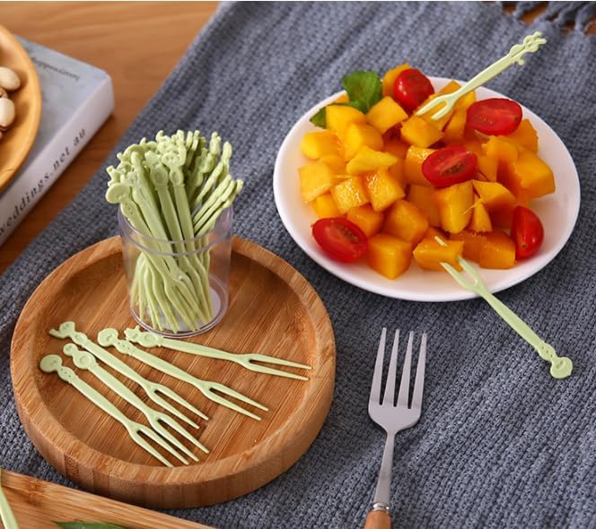 ASEANAO - مجموعة شوك طعام بلاستيكية للاستعمال مرة واحدة، شوك للفاكهة والمقبلات والبيسترو والكوكتيل والكيك والسلطة والفاكهة، 50 قطعة، أخضر