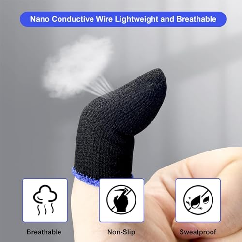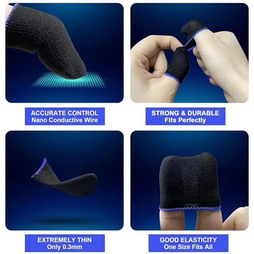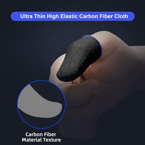 - 【حساسية أعلى】جديد تمامًا بنسبة 100%. مع تغطية ألياف الكربون، تضمن أكمام الأصابع للألعاب دقة وفعالية كل لمسة. أكثر حساسية من الألياف الفضية.