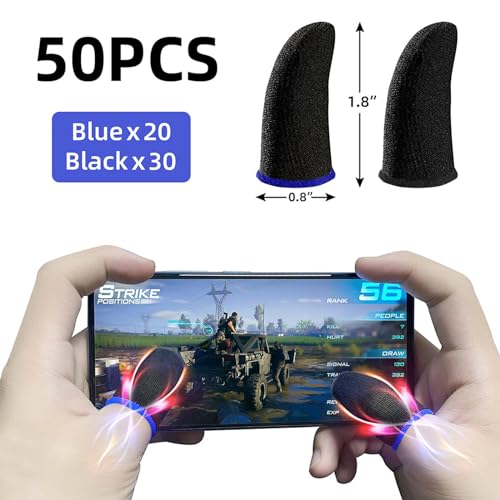 HALLEAST - اغطية اصابع للالعاب من 50 قطعة، اكمام ابهام لاجهزة التحكم في الالعاب المحمولة، غطاء ابهام مضاد للعرق وجيد التهوية بدون خياطة لشاشة اللمس لبابجي، ليج اوف ليجند، رولز اوف سيرفايفال، نايفز اوت، فورتناين