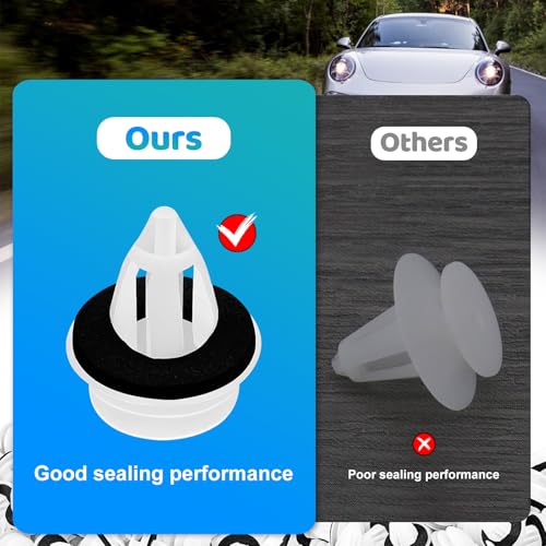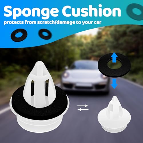 - 【تصميم الوسادة الإسفنجية】 - تتميز مشابك التثبيت للسيارات البلاستيكية بتصميم يتضمن حلقة إغلاق مبطنة اسفنجية، مما تقلل الضوضاء بفعالية وتقوم بدور ممتاز في التثبيت ومقاومة المياه دون التسبب في أي ضرر للسيارة.
