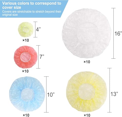 Generic - 50 غطاء مطاطي لتغطية أوعية الطعام قابلة لإعادة الاستخدام - مواد محسنة وسميكة للغاية - مجموعة متنوعة قابلة للتمدد - بديل لورق الألمنيوم والتغليف البلاستيكي - آمنة للاستخدام في الميكروويف