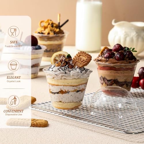- 50 مجموعة من أكواب بارفيه بلاستيكية شفافة سعة 9 اونصة مع أغطية داخلية وقبة (بدون فتحات) - أكواب حلوى للاستعمال مرة واحدة مع أغطية للأطفال، غمس الوجبات الخفيفة والخضروات، زبادي الفاكهة والمشروبات الباردة المثلجة، لا تسرب