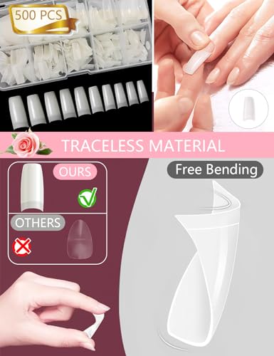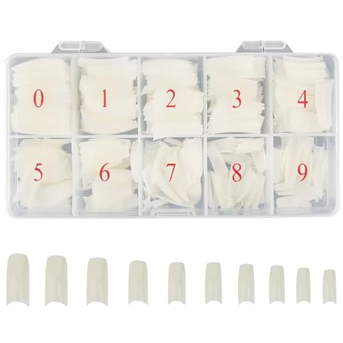 JIRONN - 500 قطعة من اطراف الاظافر المصنوعة من الاكريليك، 10 مقاسات لتغطية كاملة للاظافر الصناعية، اطراف كاملة مزيفة مع صندوق لصالونات التجميل بنفسك للنساء (فرنسي)