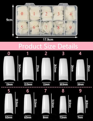 - 【مقاس مناسب】تستخدم أطراف الأظافر الأكريليك تصميمًا مربعًا ولها 10 مقاسات مختلفة لتلبية متطلباتك. توفر الأطوال المناسبة وقت التبريد والقص مع إطالة أظافرك.