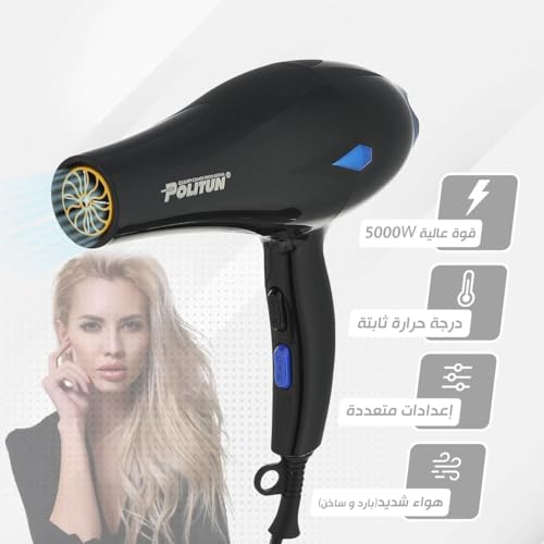 - قوة تصفيف فائقة: أطلق العنان للإمكانات الكاملة لشعرك مع مجفف الشعر الاحترافي من بوليتون. يتميز بمحرك مثير للإعجاب بقدرة 5000 واط، استمتع بالتجفيف السريع والتصفيف بدون مجهود كما لم يسبق له مثيل.